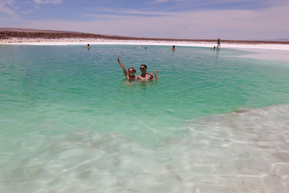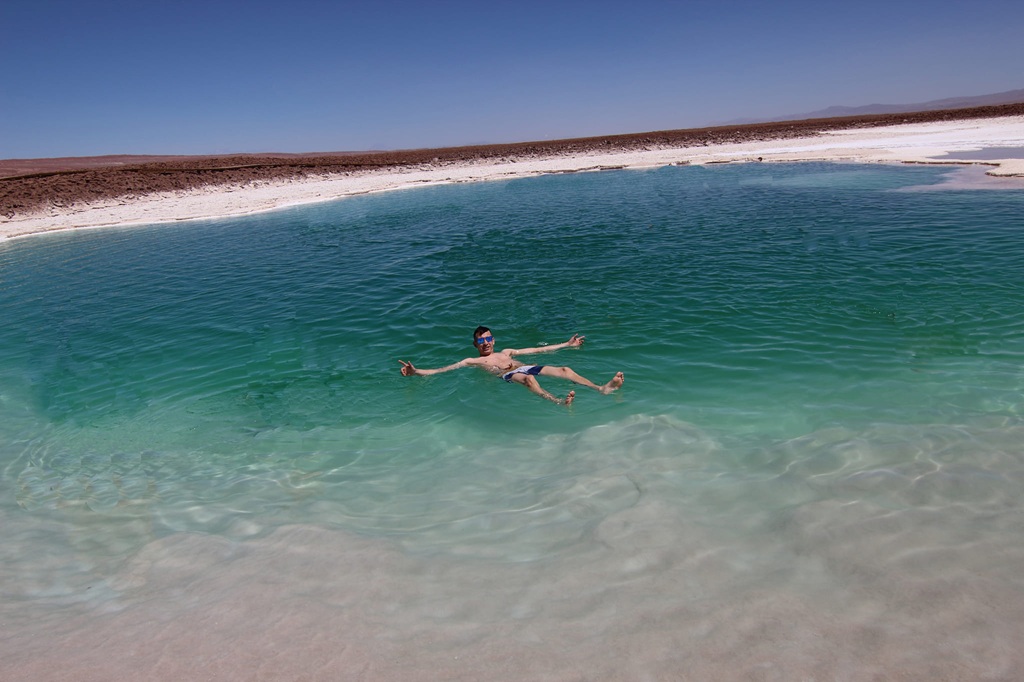 En algunas lagunas podrás disfrutar de un baño inolvidable en aguas más saladas del Salar de Atacama, donde flotarás sin esfuerzo en medio del desierto.