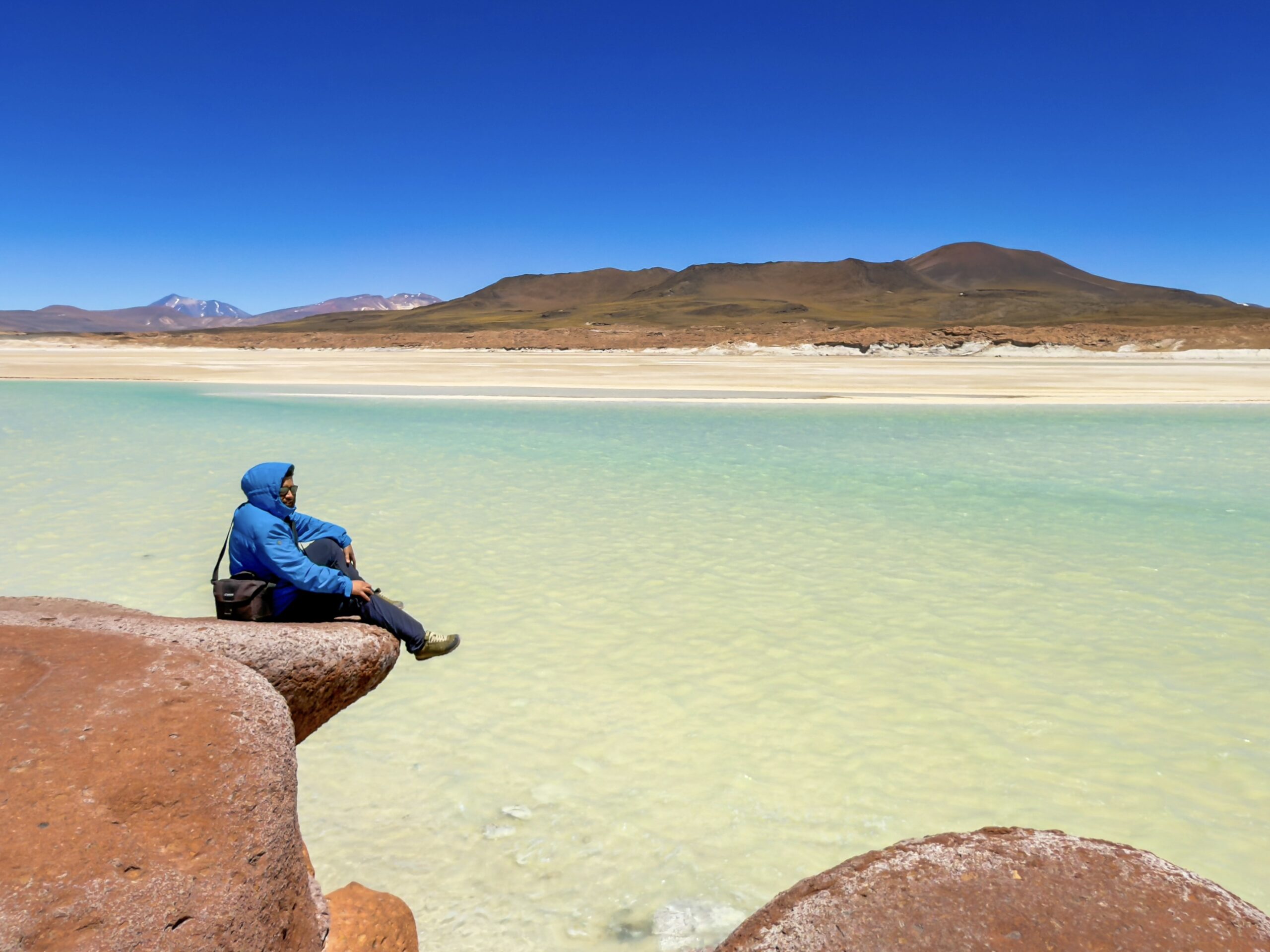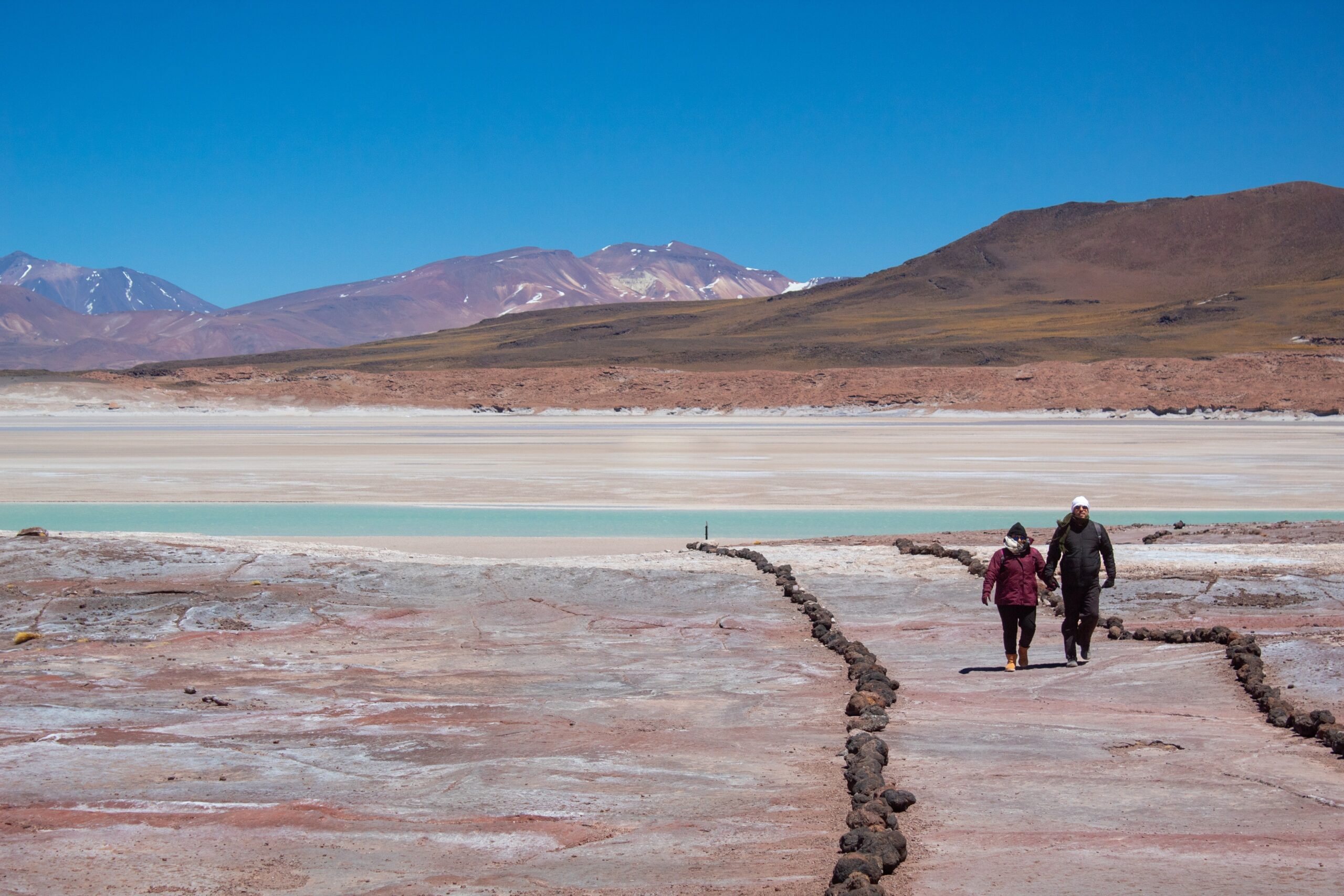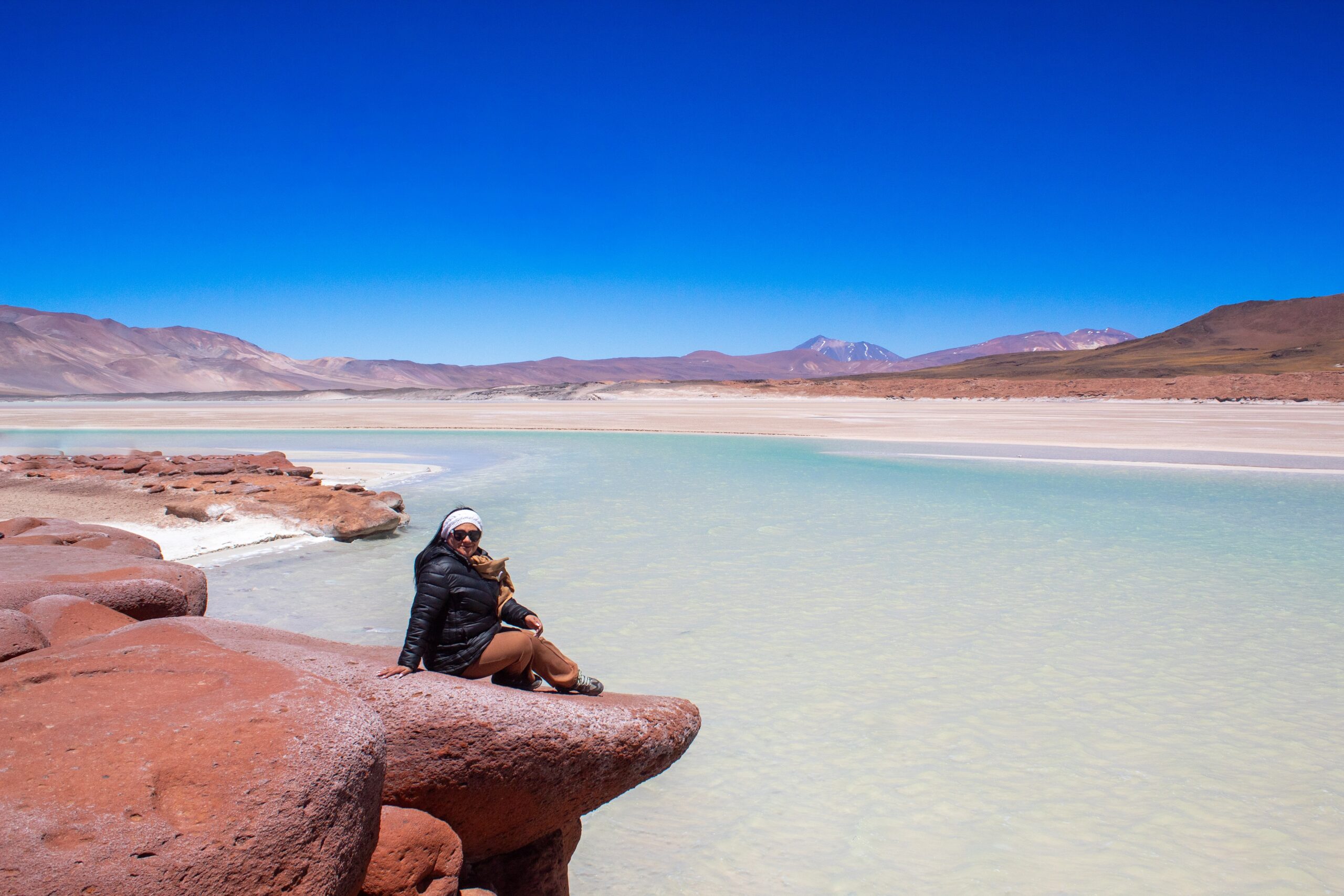 Luego ascenderemos hasta los 4.200 metros de altitud para visitar el sector del Salar de Aguas Calientes, conocido por sus formaciones rocosas de tonos rojizos, conocidas como Piedras Rojas. Aquí podrás apreciar un entorno mágico, rodeado de lagunas de color turquesa y montañas andinas.