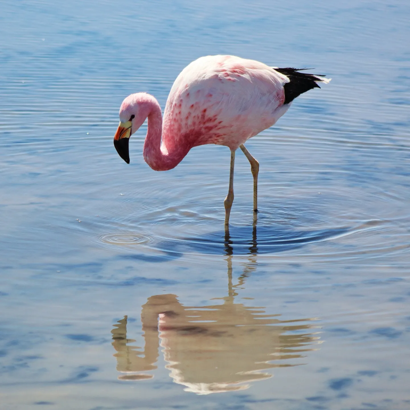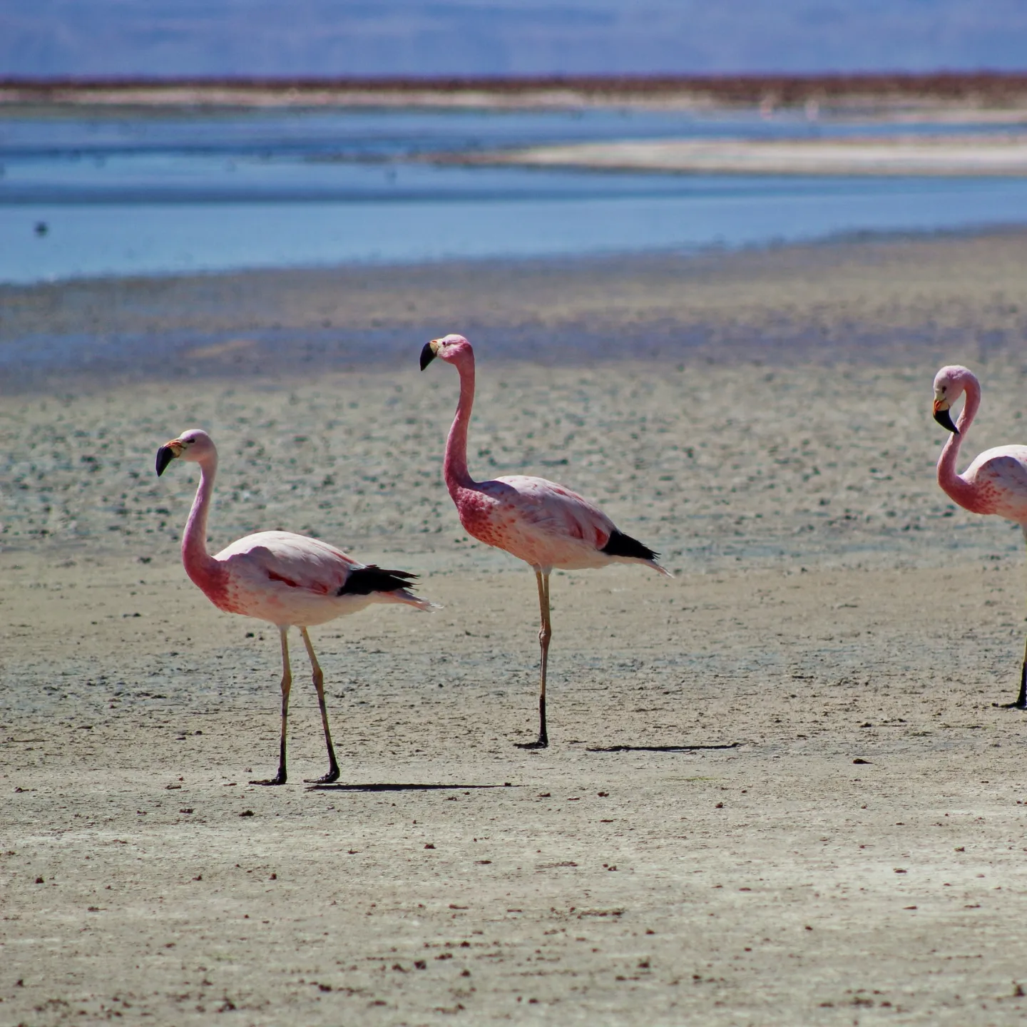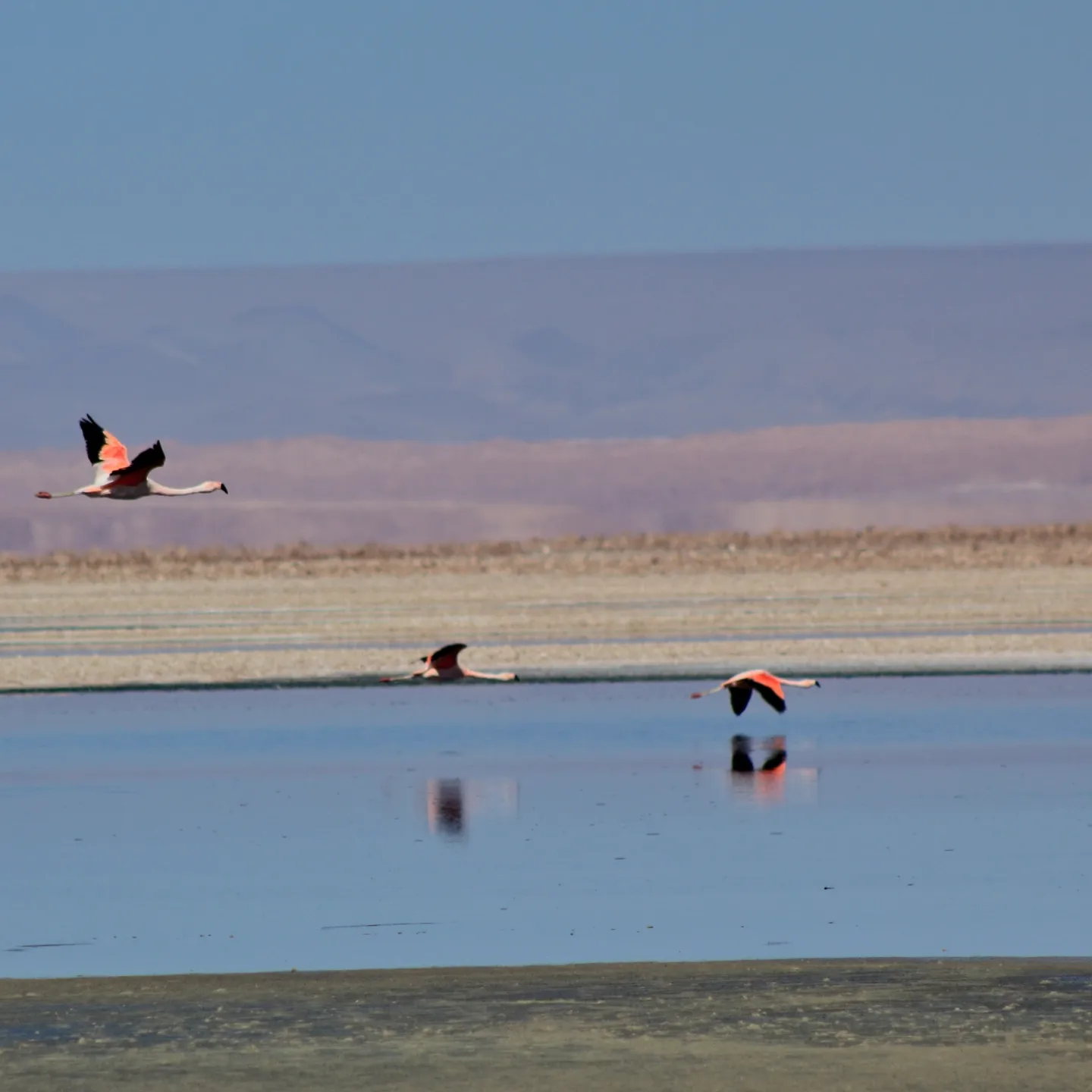 Finalmente, visitaremos la Laguna Chaxa, en pleno Salar de Atacama, hábitat natural de los flamencos andinos, chilenos y de James, un espectáculo natural que no olvidarás.